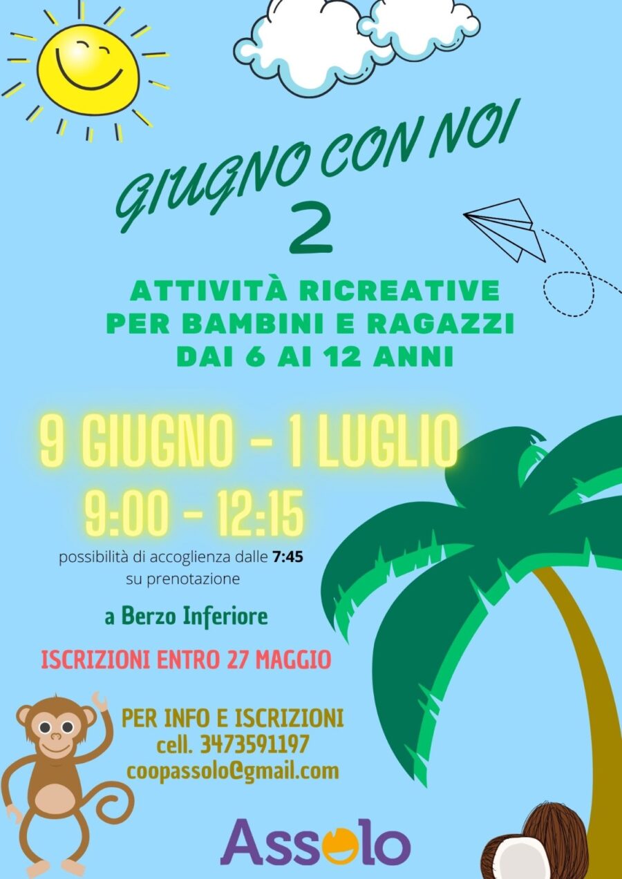 Il progetto si realizzerà a Berzo Inferiore presso la sede di Assolo e sul territorio circostante, prenderà il via mercoledì 9 giugno e proseguirà fino al 1 luglio nei giorni feriali (sabato escluso), dalle 09:00 alle 12:00 (con possibilità di anticipo da concordare con la direzione) e partirà al raggiungimento di almeno 10 iscritti.