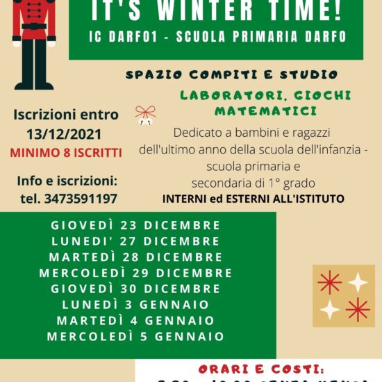 Le attività si svolgeranno durante le vacanze natalizie: il 27 e il 28 dicembre e anche il 3 e il 4 gennaio, dalle 9.30 alle 11.30, presso gli spazi dell’Oratorio di Sulzano.